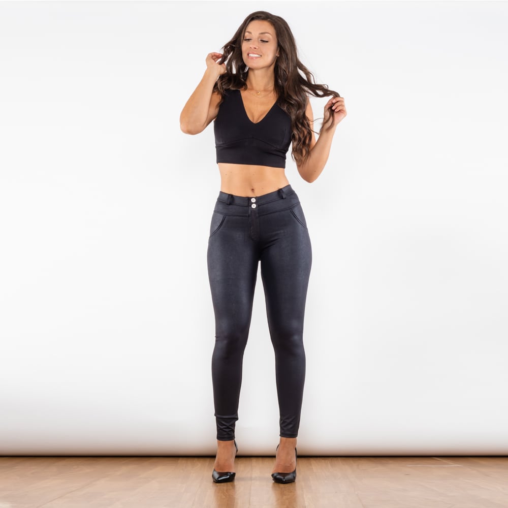 Elevate your style with our Shascullfites Melody Crackle Black Coated Middle Waist Lift Pants. Designed for the modern woman, these pants are the perfect blend of comfort and chic sophistication. Made from a high-quality fabric blend of 75% polyamide and 25% spandex, they provide the ultimate stretch and durability while ensuring a flattering fit.